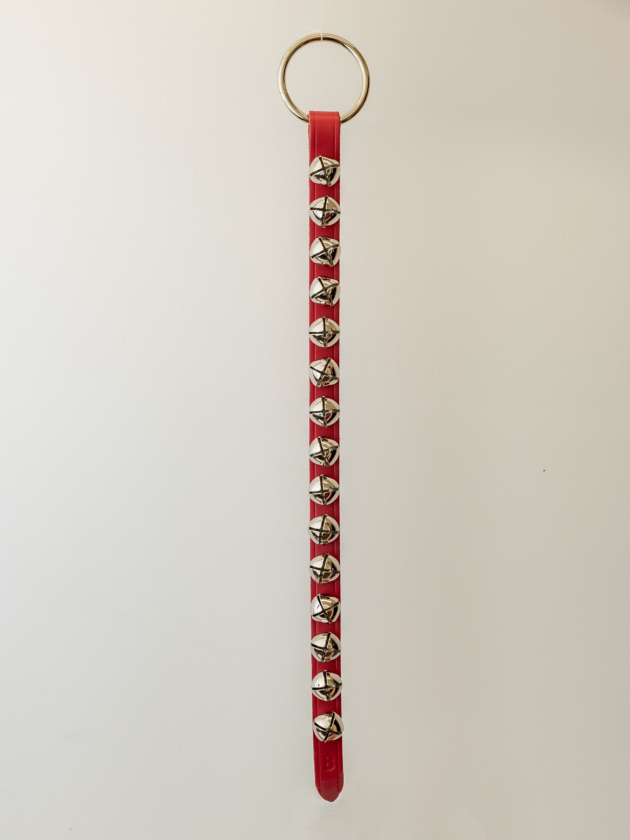 Transform your doorway into a festive winter wonderland with this stunning 24" Red Bell Strap. Crafted from premium red leather by Belsnickel Barn, it features gleaming nickel bells that jingle with every breeze.