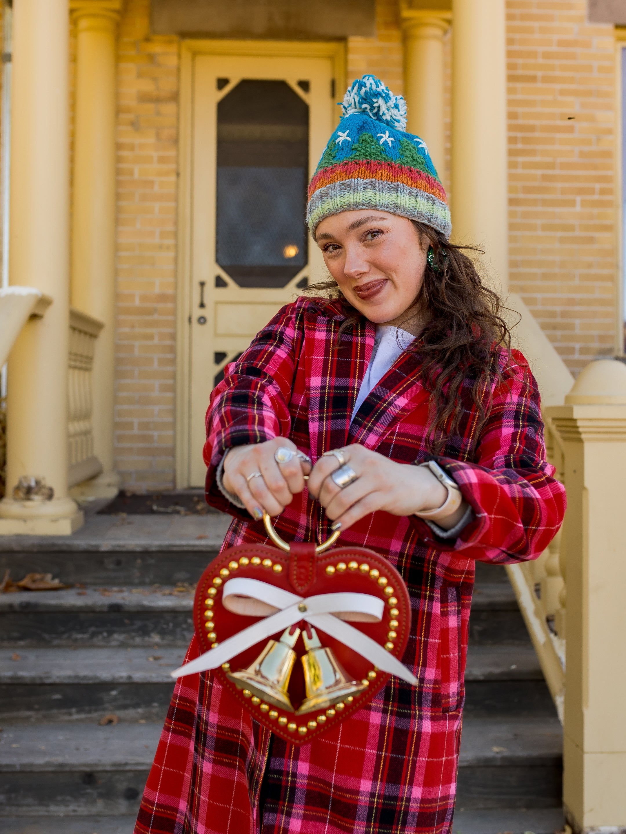 Crafted from premium red leather, it features two delicate bells that jingle with holiday spirit.