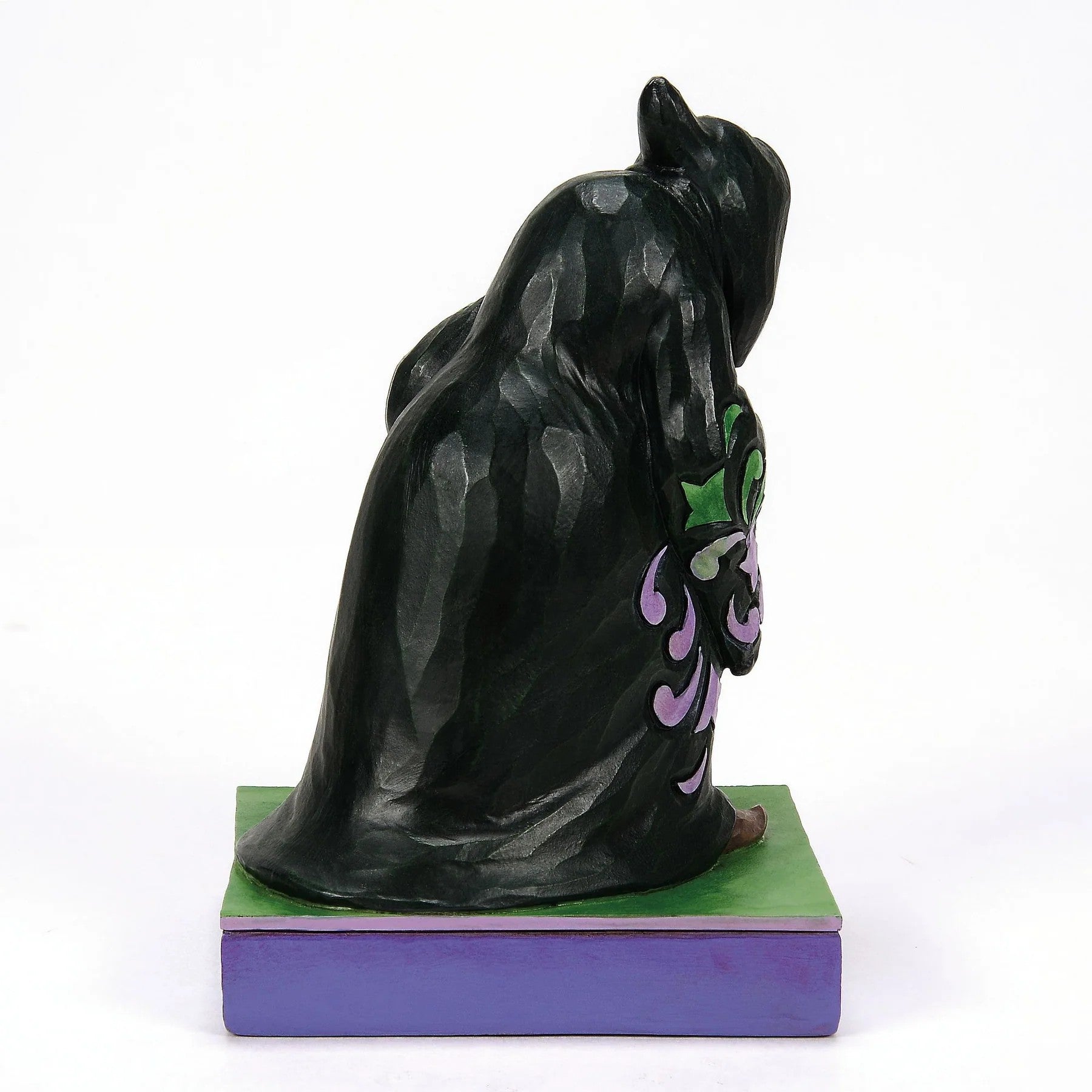 In a sinister guise, the evil witch lurks in the shadows as an elderly woman, her black cloak adorned with vibrant Jim Shore rosemaling, as she carries a basket brimming with poison apples. Her intentions drip with malice and deceit.