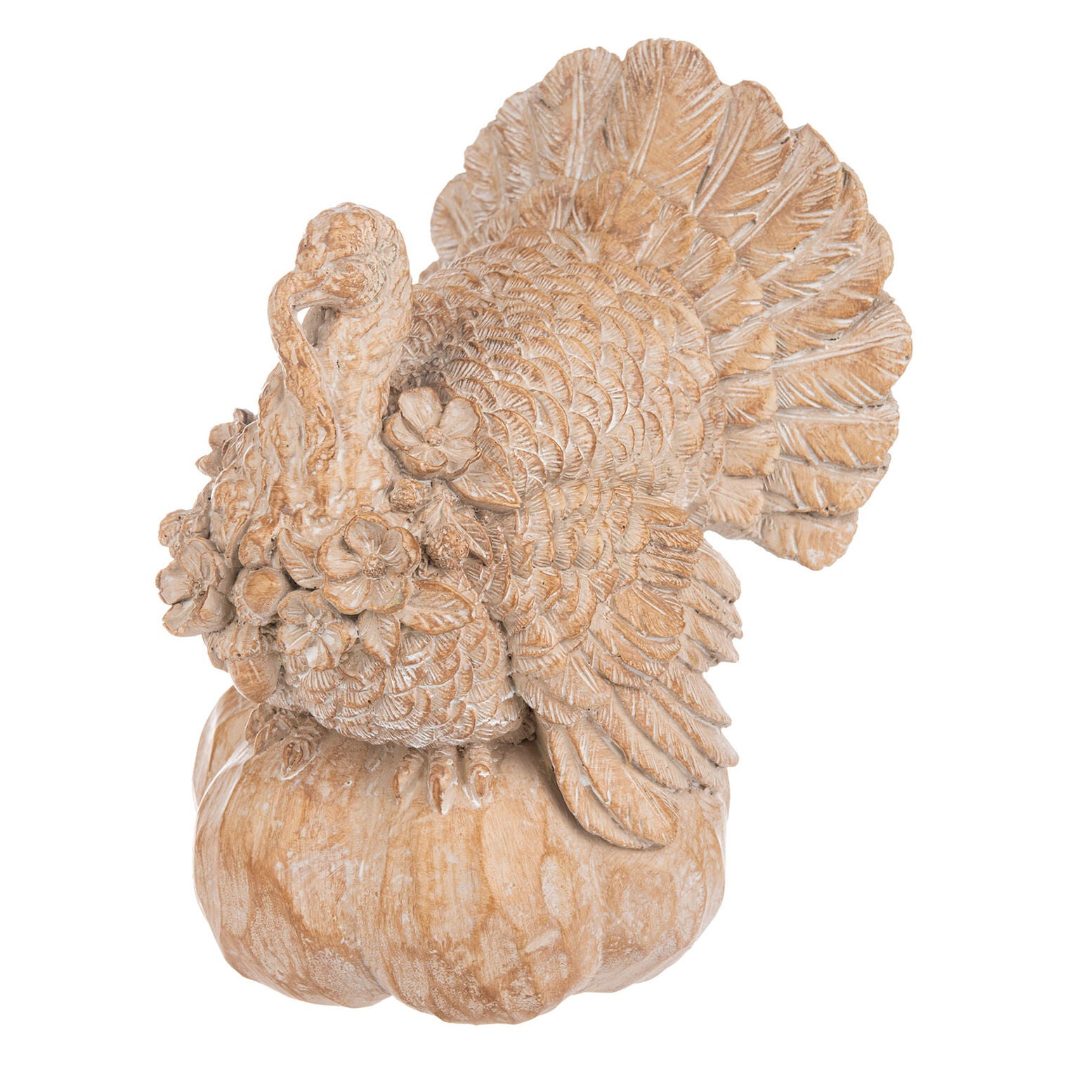 Elevate your autumn entertaining with this exquisitely crafted turkey figurine, meticulously sculpted from rich brownish resin to capture the warmth of hand-carved wood. Perched gracefully atop a pumpkin, the piece showcases refined detailing that brings rustic sophistication to any seasonal display.