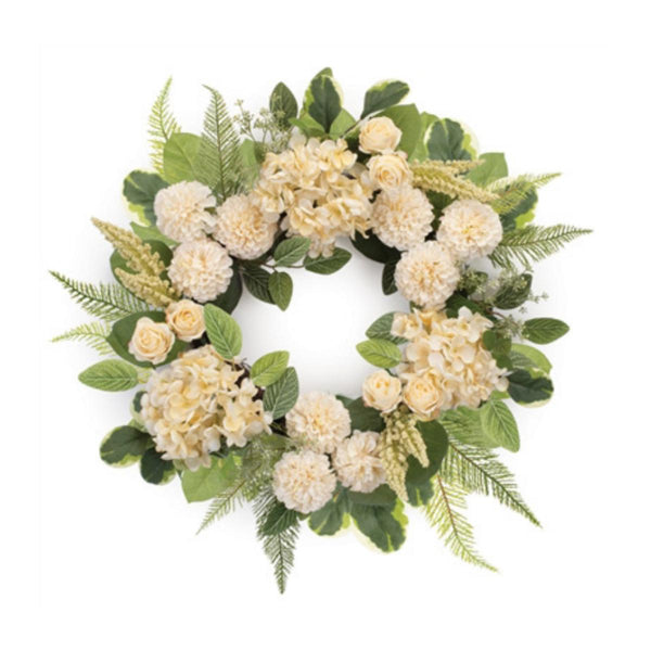 26" White Hydrangea Wreath