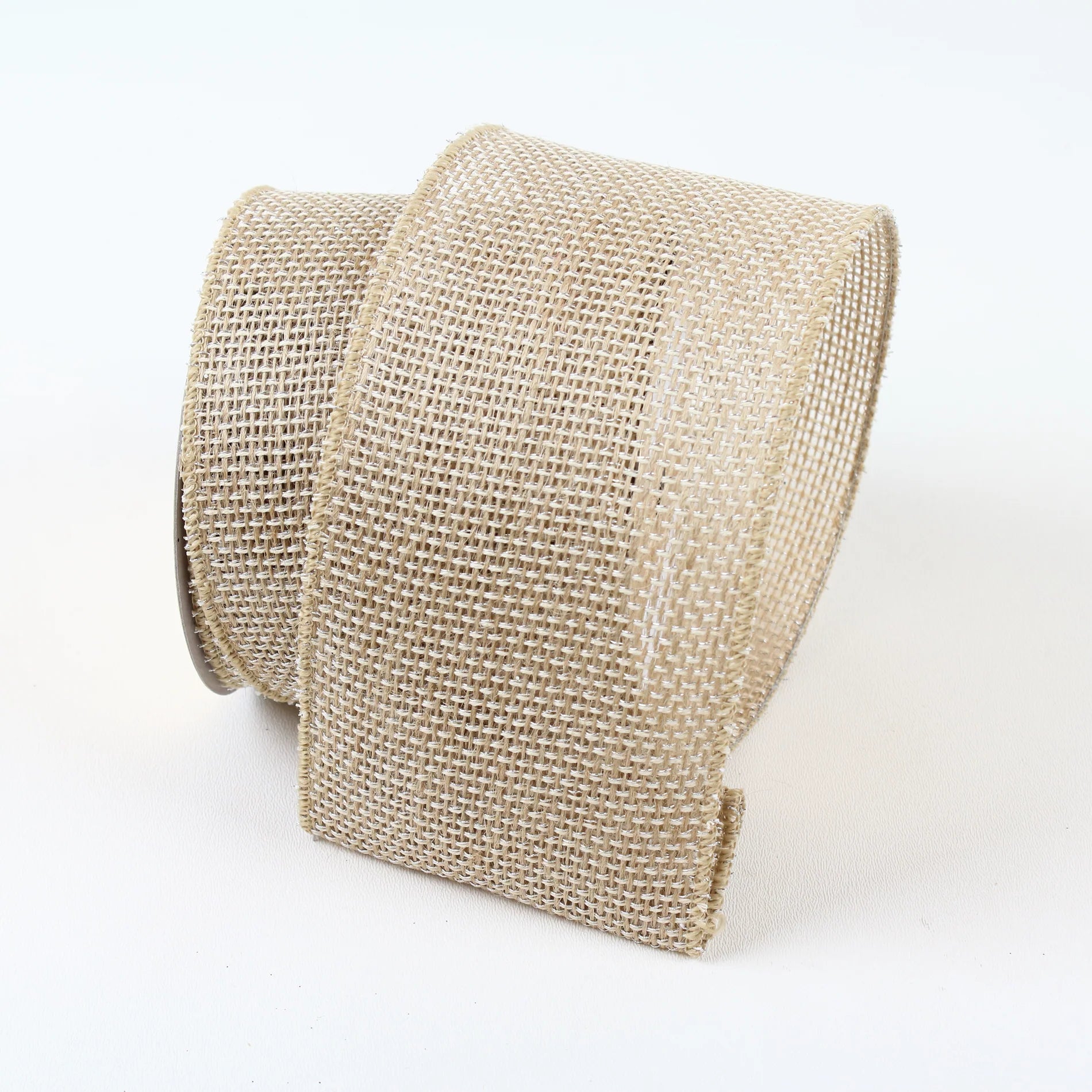 Sturdy jute netting featuring thin silver metallic details throughout. Ribbon is constructed with thick, wired edge and is fused with a secondary fabric to provide shape and structure.