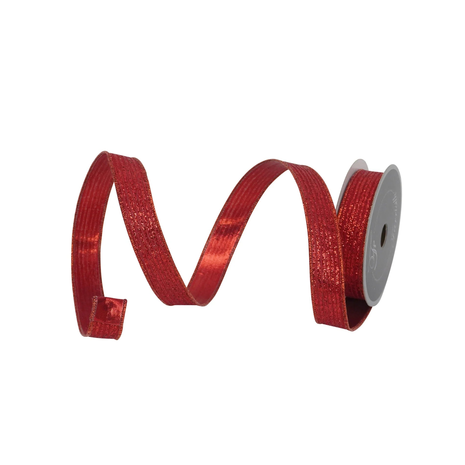 Fine glitter stripe detailing backed with metallic fabric .A Ribbon is constructed with thick, wired edge and is made with a secondary fabric to provide shape and structure.